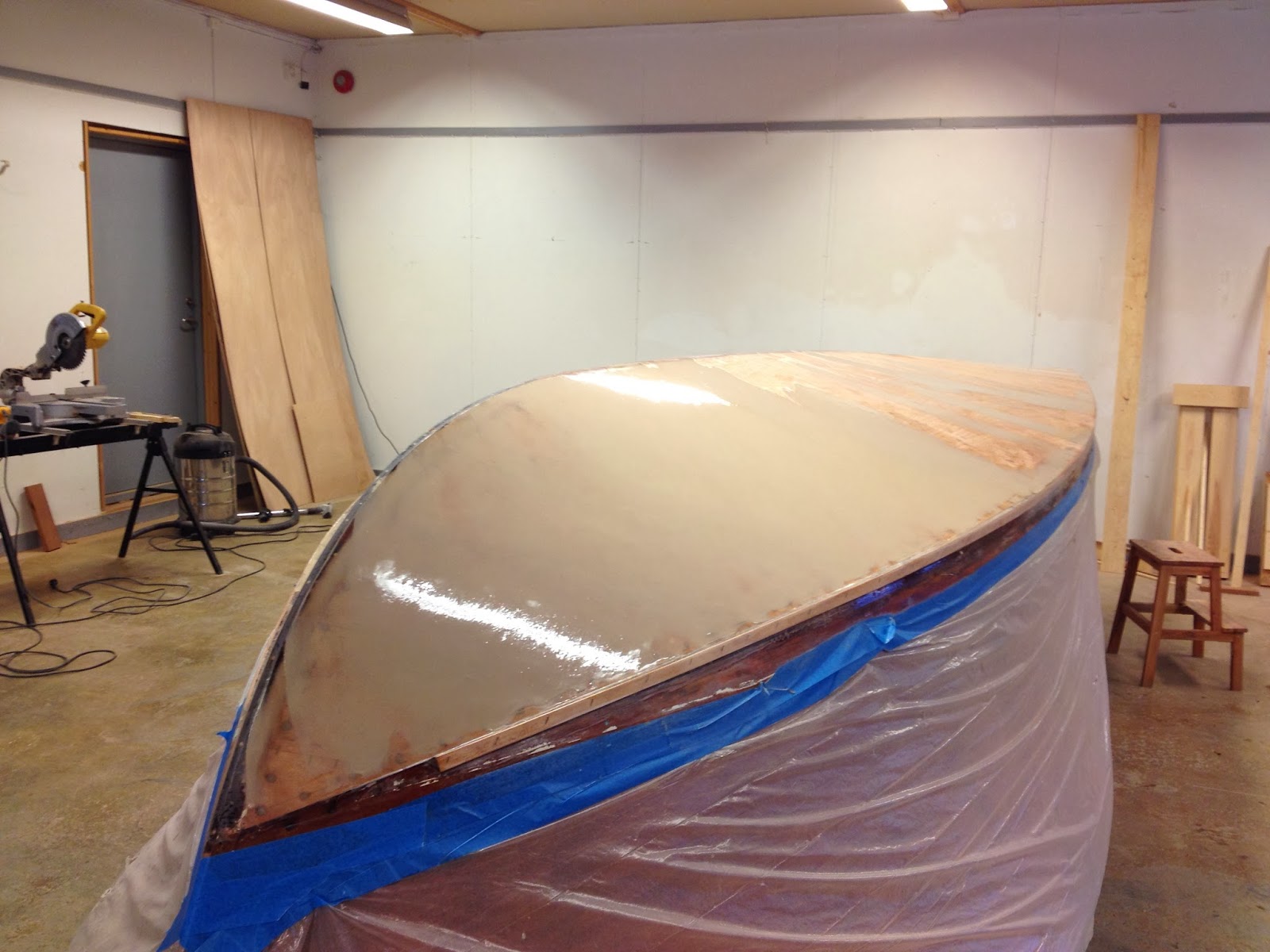 After letting the epoxy cure for 4-5 days, it was time fort primer and bottom color. I used a 2 component epoxy primer and a 2 component polyurethane bottom paint.